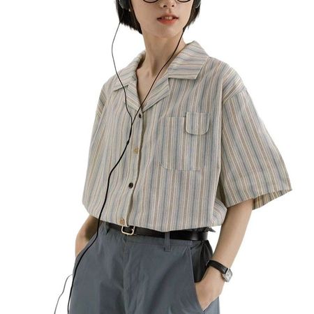College Style Japanese Striped Short-Sleeved Shirt Female Student Tops