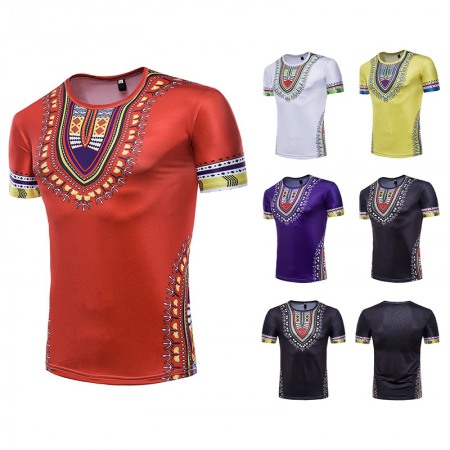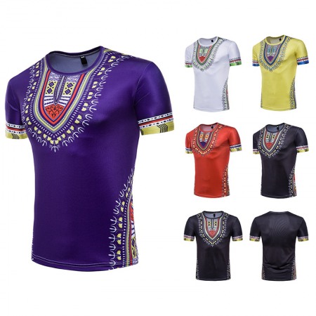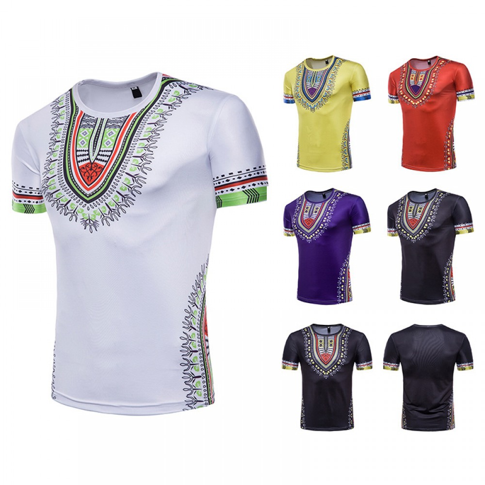 Fashion Male Creative Ethnic Style Floral 3D Printing Short Sleeve T-Shirt