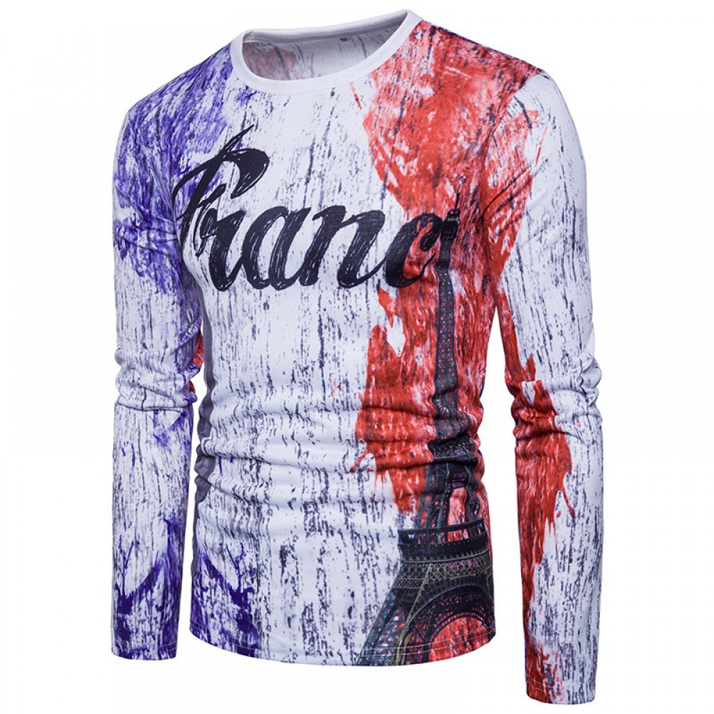 Fashion Men's Casual Personality Splash Ink Letter Printing Long-Sleeved T-Shirt