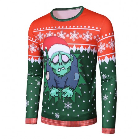 New Festive Santa and Villain Jacquard Men's Printed Long-Sleeved T-Shirt
