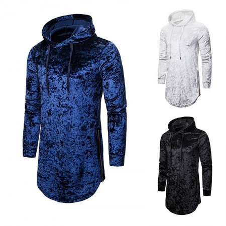 New Men's Diamond Velvet Fashion Personality High-End Street Style Hooded T-Shirt