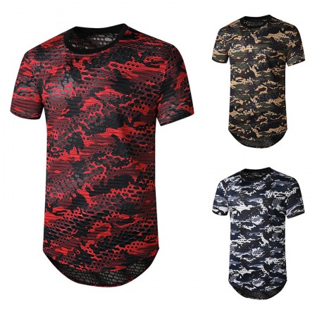 New Style Men's Diamond Lattice Hip-Hop Loose Short-Sleeved T-Shirt D33