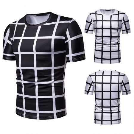 New Summer Men's Plaid Print Short-Sleeved T-Shirt